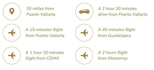 Settled in the state of Jalisco, Mayto resides within the municipality of Cabo Corrientes. Just 55 miles from Puerto Vallarta, a mere 1.5-hour drive. The path is straightforward: follow the Puerto Vallarta - Manzanillo Highway 200, which seamlessly connects to a gleaming 30 kilometer road guiding you directly to the development.