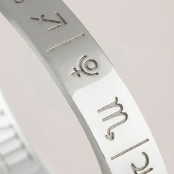 Cada pulsera Urania es tu carta astral hecha joya, diseñada para llevar contigo tu cielo natal con sus 12 casas y todas tus posiciones astrológicas.