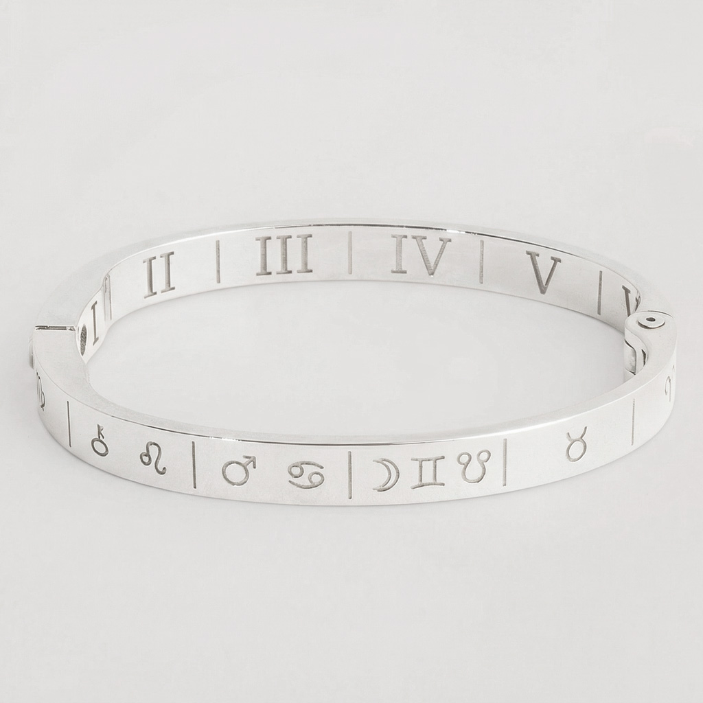 Cada pulsera Urania es tu carta astral hecha joya, diseñada para llevar contigo tu cielo natal con sus 12 casas y todas tus posiciones astrológicas.